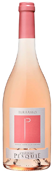 Château Pesquié Les Terrasses Rosé produceres kun i begrænsede mængder. Fra årgang 2018 er vinen økologisk dyrket og vinens stil nærmer sig mere den lyse som man kender fra Provence-rose. Vinen har en imponerende dyb, pink farve, og en eksotisk, frisk bouquet af bær. Smagen emmer af friskhed, og fremstår med sin smag af bær, bla. noter af hindbær, som et symbol på solskin. En Rosé som passer fint til mange forskellige typer af mad, og derfor kan drikkes hele året.